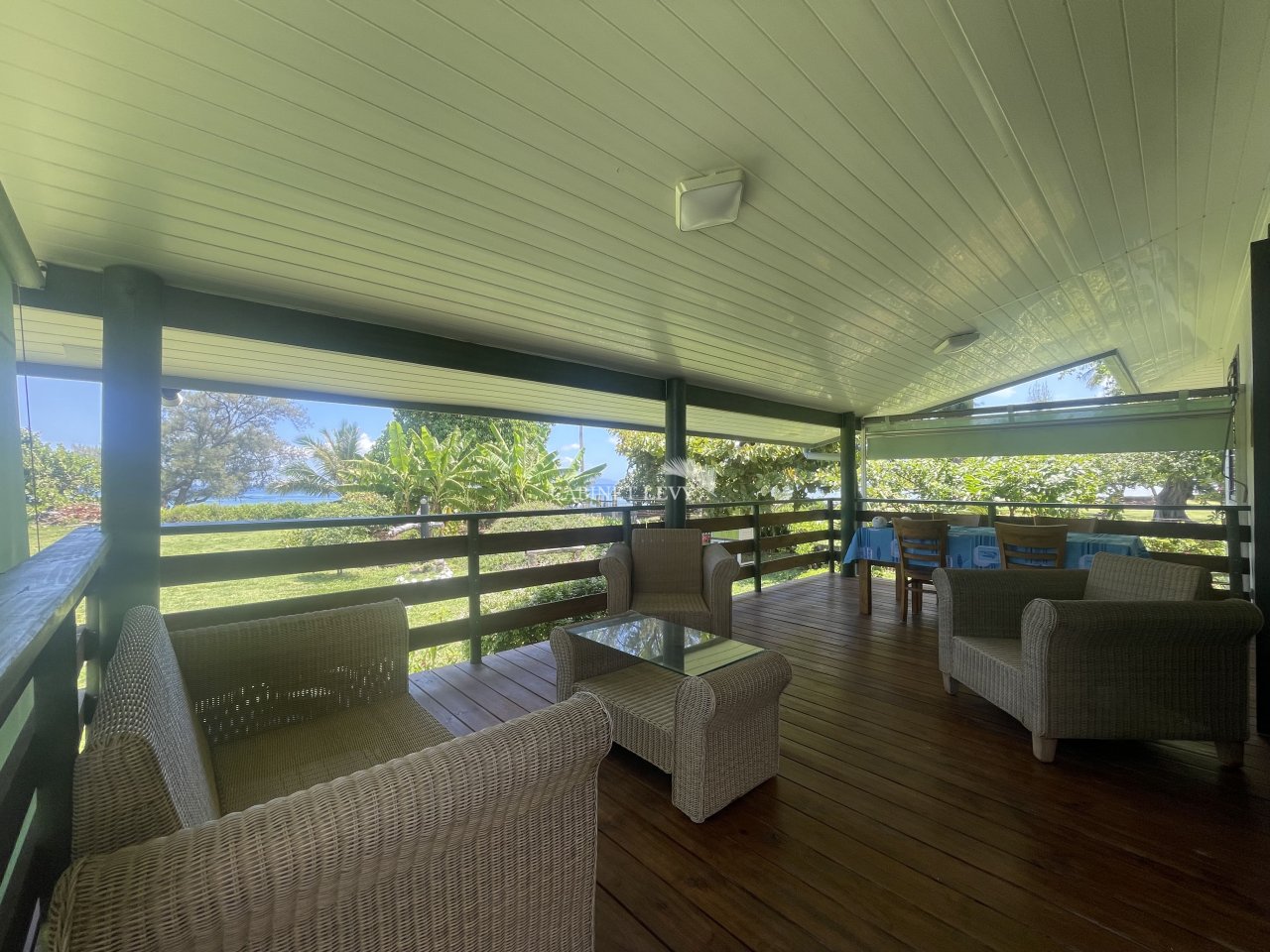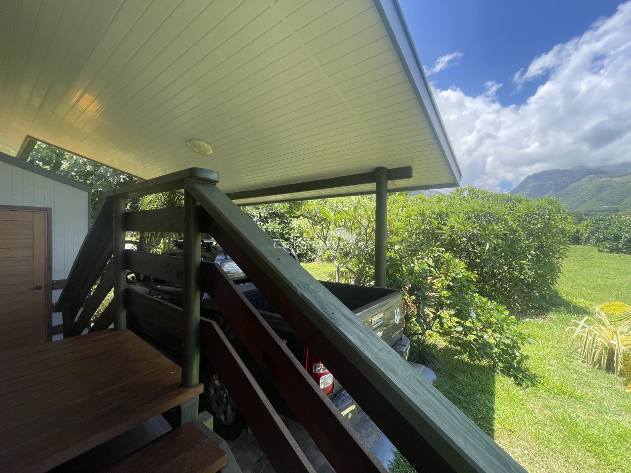 Charges : 20 000 XPF / mois en supplément, incluant l’eau, les ordures ménagères, l’assainissement et l’entretien du jardin.
